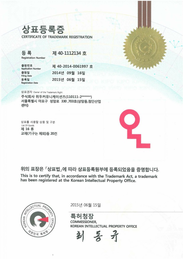 [Korea/Trademark] OLL 16 Class 페이지 정보 작성자 WeDu 댓글 0건 조회 6,627회 작성일 19-06-04 10:46 본문 2015-06-15 Trademark 40-1112134 16 Class List Previous[Korea/Trademark] OLL 09 Class 19.06.04 Next[Korea/Trademark] OLL 41 Class 19.06.04